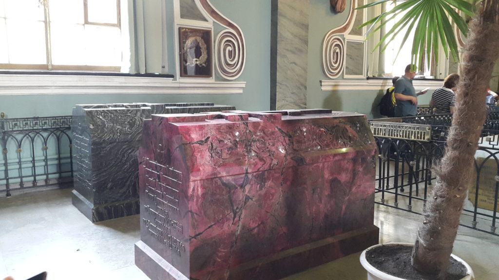 Dies ist das Grab Nikolaus II., der abgedankt hatte und deshalb abseits von den anderen liegen musste