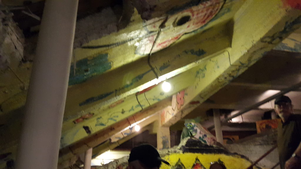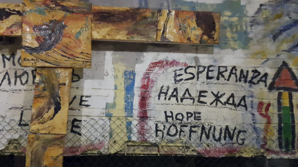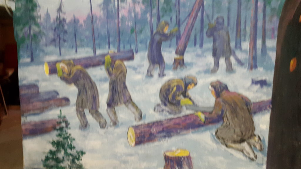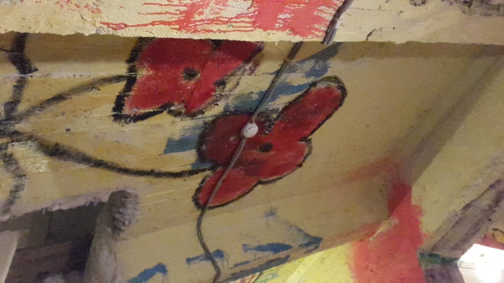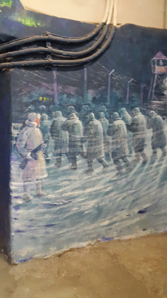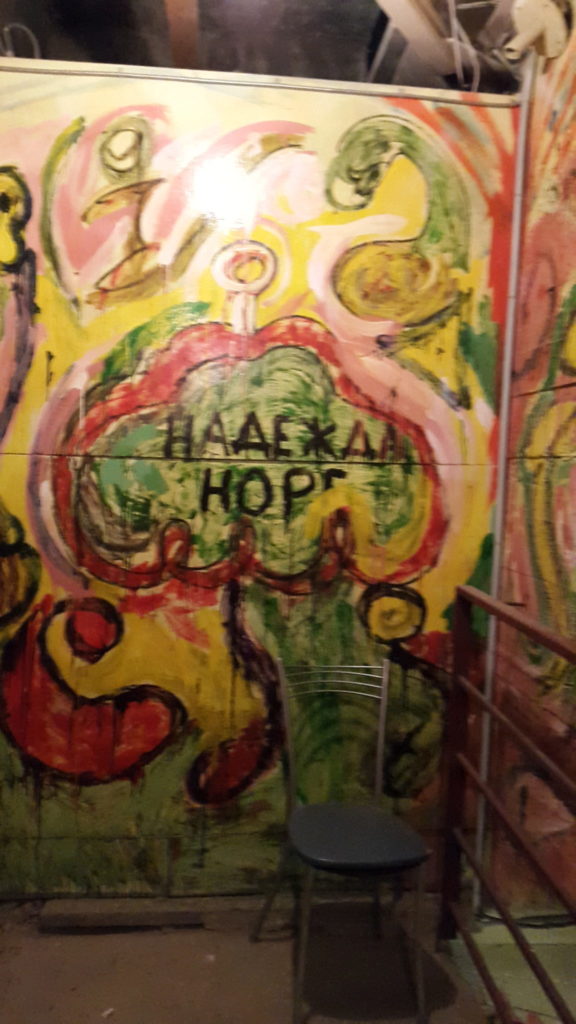Unter dem Schwimmbad/Kirche Kunst zum Gulag und abstrakte Werke u.a. von Adam Schmidt und Mat Lamb.