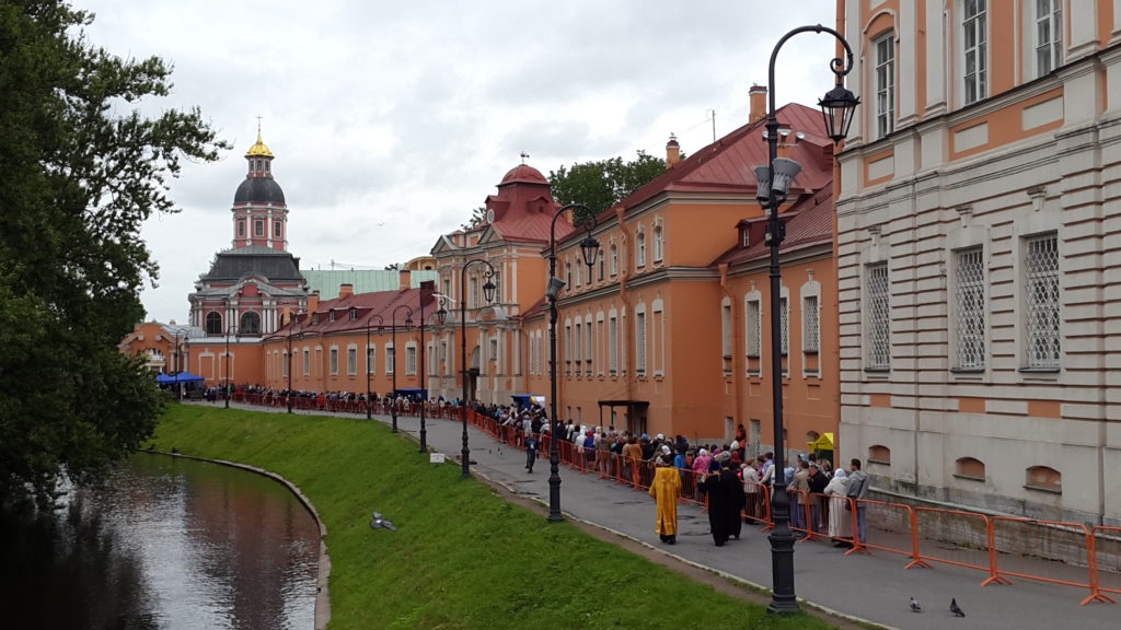 In diesen Tagen wurden die Gebeine des Heiligen Nikolaus aus Moskau nach St. Petersburg überführt. Dafür gab es riesig lange Straßenabsperrungen für die Schlange stehende russische Bevölkerung. Kaum zu glauben, was aus diesen stolzen Komsomolzen geworden ist.