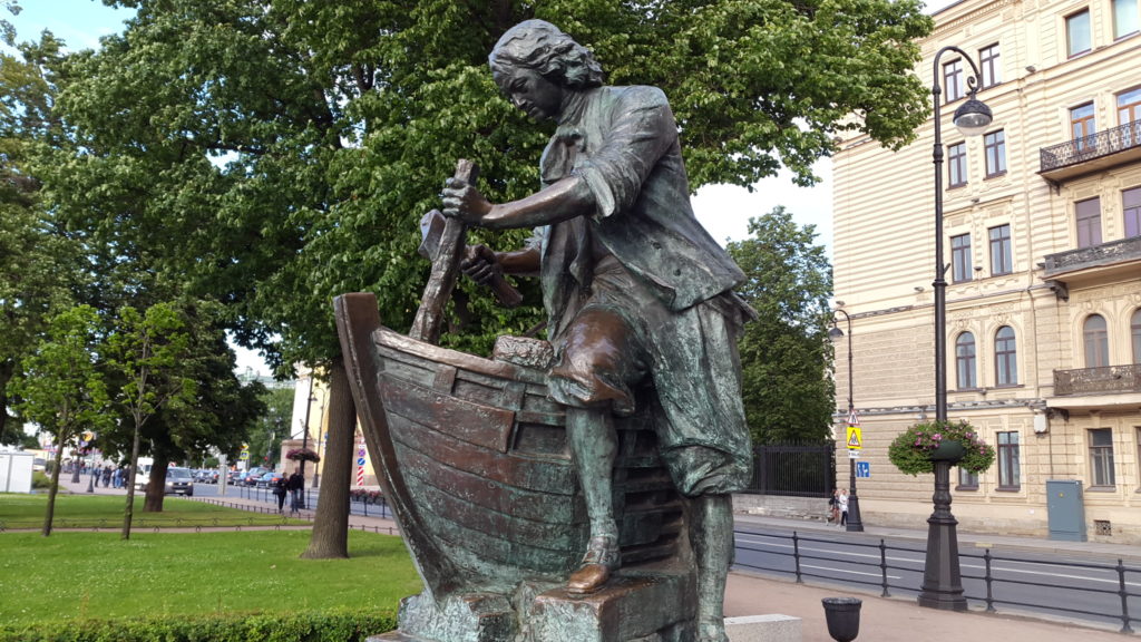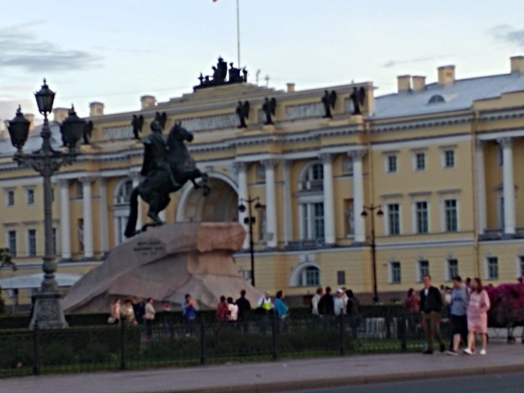 Vom Peterhof geht mit dem Tragflächenboot zurück nach Petersburg, wo wir zunächst alleine noch um die Eremitage und die Admiralität schleichen und erleben an einer kleinen Straßenbühne eine Band mit einem hervorragenden Dirigenten.