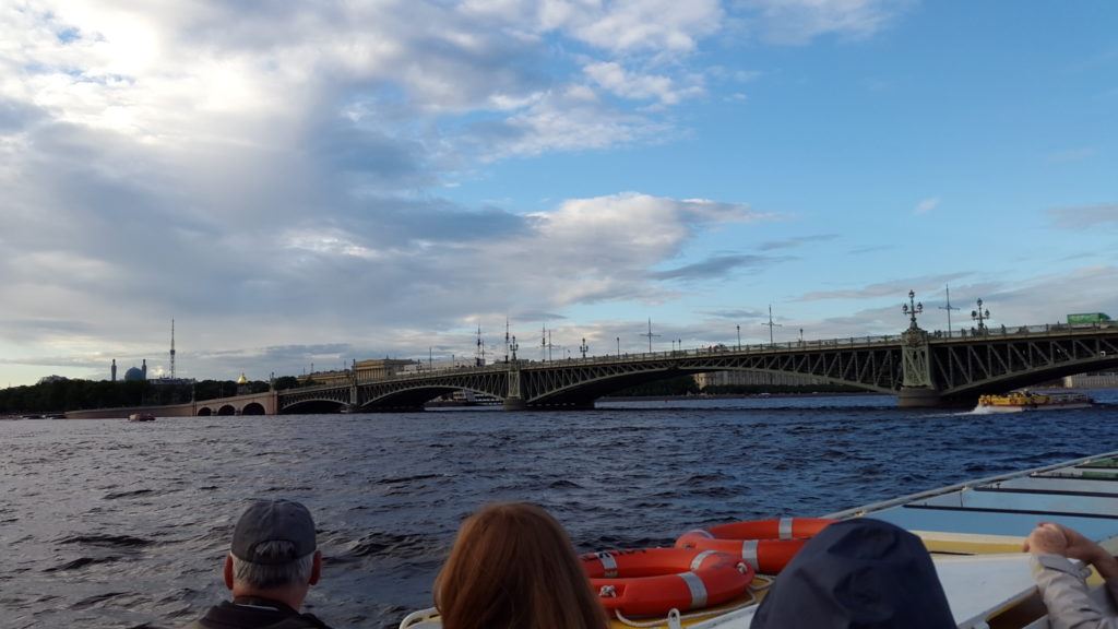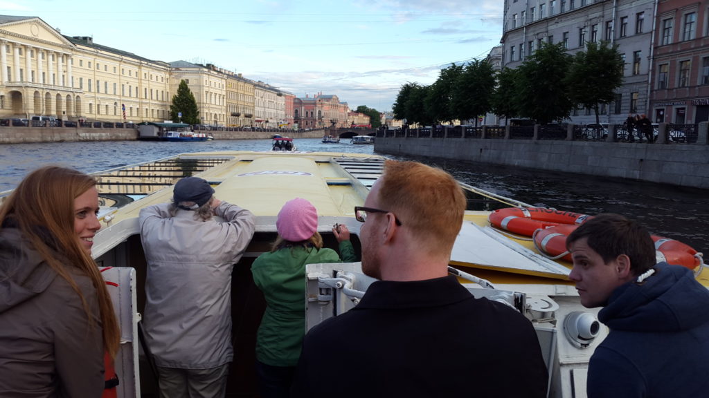 Abschließend in der Gruppe eine Bootsfahrt auf der Newa, vorbei an prachtvollen Palästen.