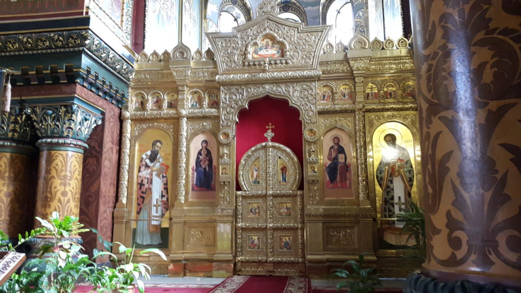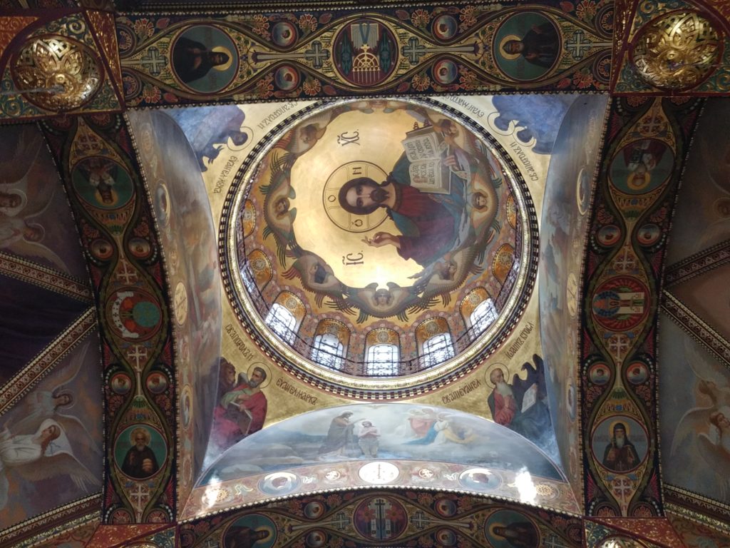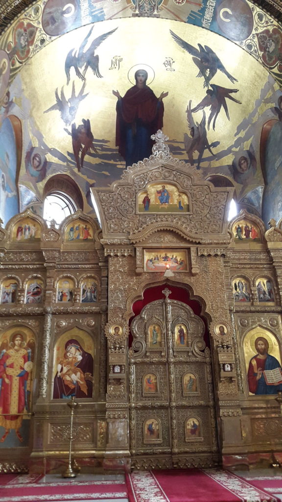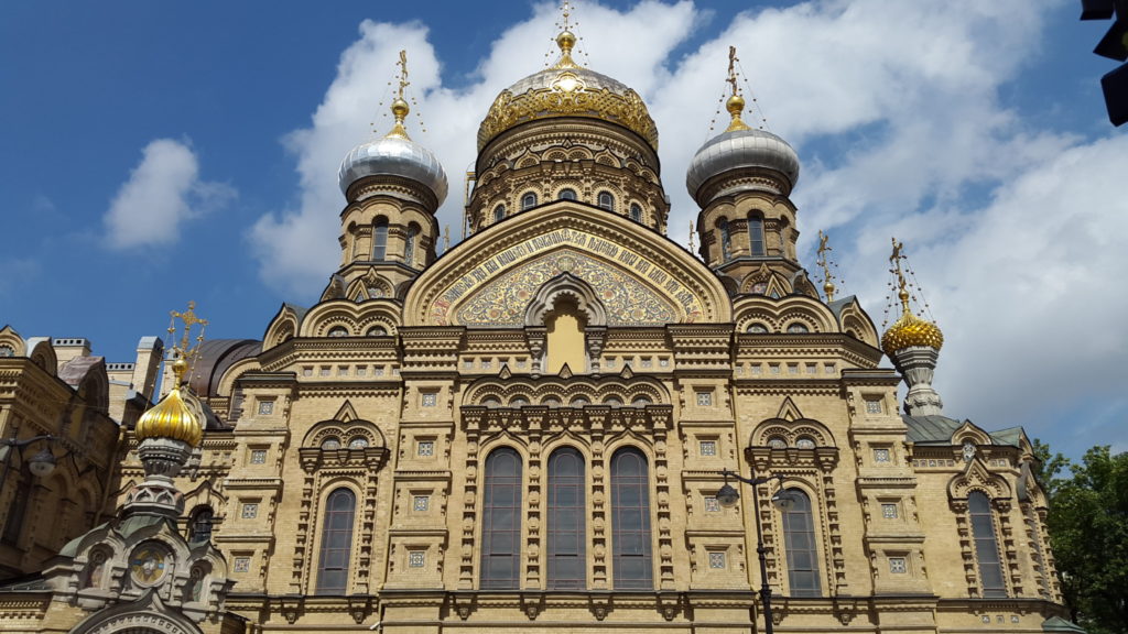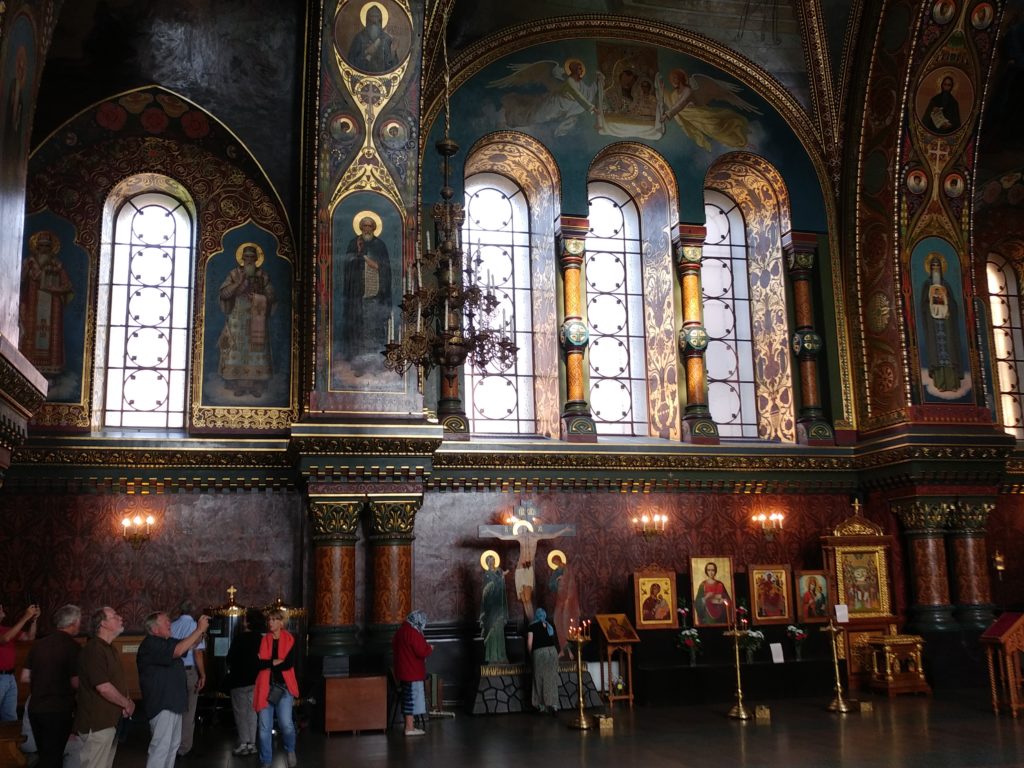 Maria-Auferstehungs-Kirche Und nun sind wir an und in der wunderbar wieder hergerichtete Maria-Auferstehungskirche, die zu Sowjetzeiten ein Trainingszentrum für Eisläufer war, u. a. für das Paar Protopopow. Man sehe und staune